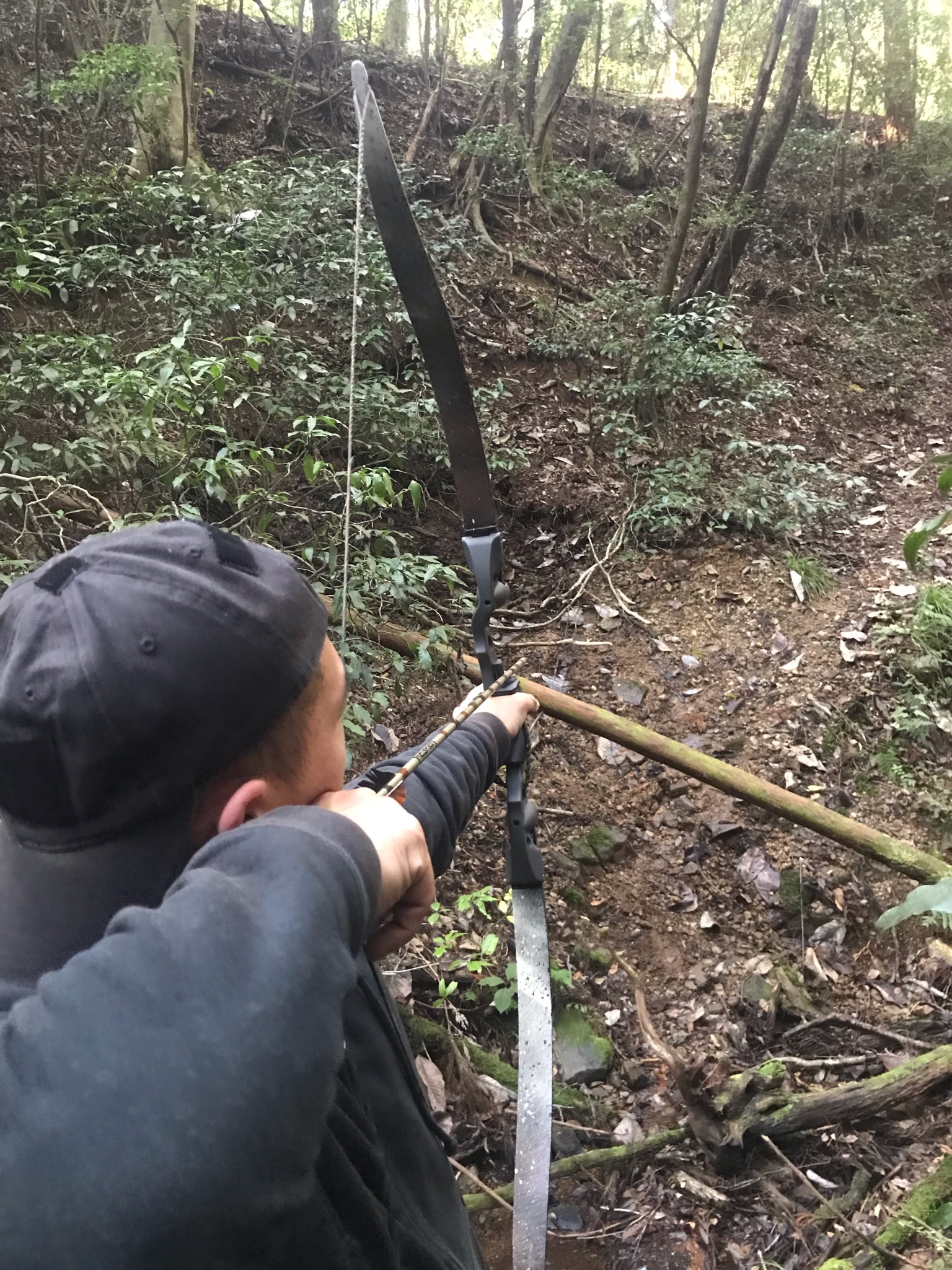 参加者の方は、これまでの弓制作ワークショップで自作した弓を使う人や、ネットで気になった弓を購入してくる人などいろいろいましたが、今回のワークショップのポイントは「サイトの無い弓でもしっかり当てられる様になる!」なので、基本的にはどんな弓でも共通するのはサイトが無い事です。