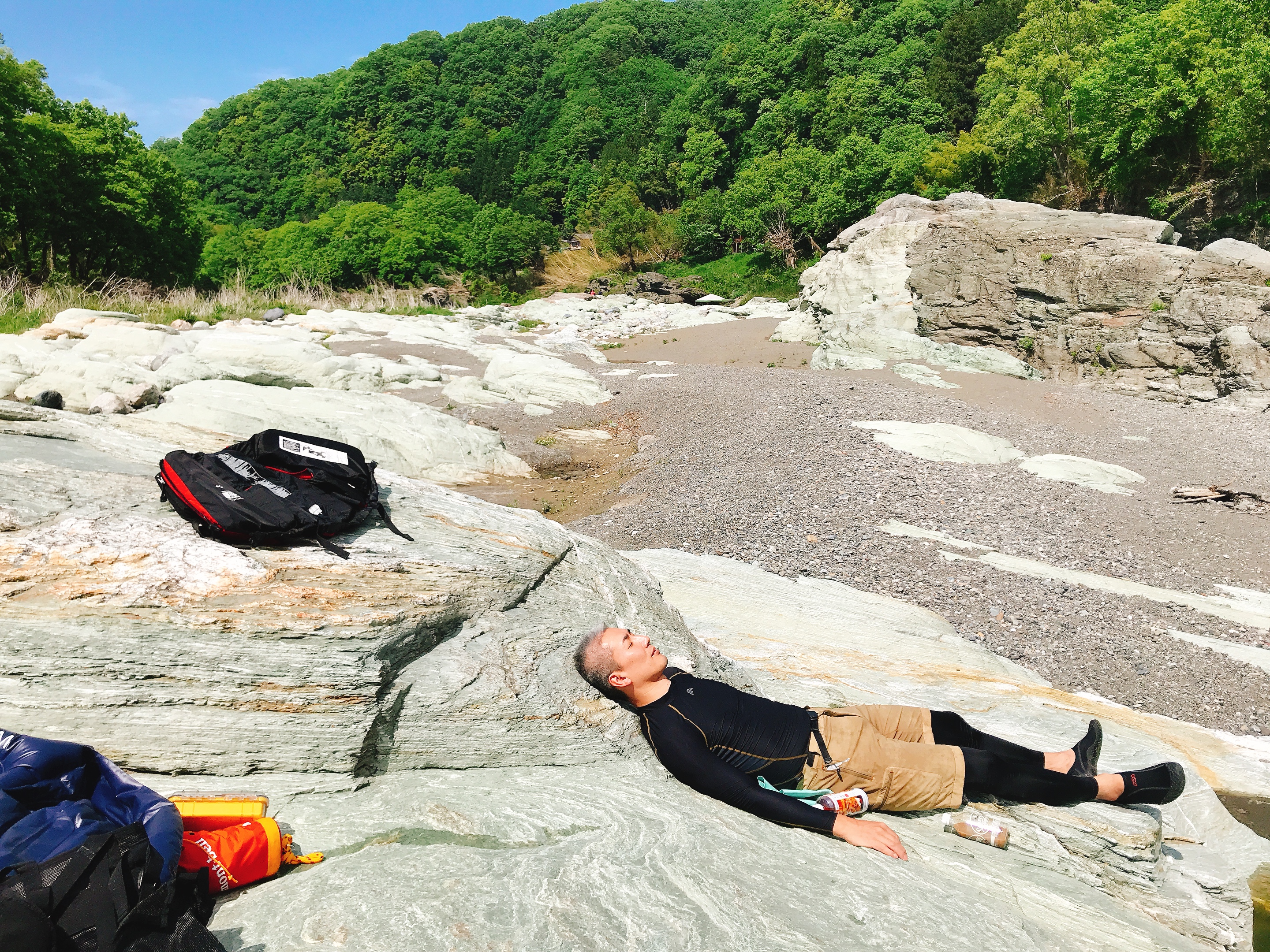 今回のワークショップでのポイントは、当日持参した自分の荷物は基本的に全て持ったまま川に入り、訓練します!