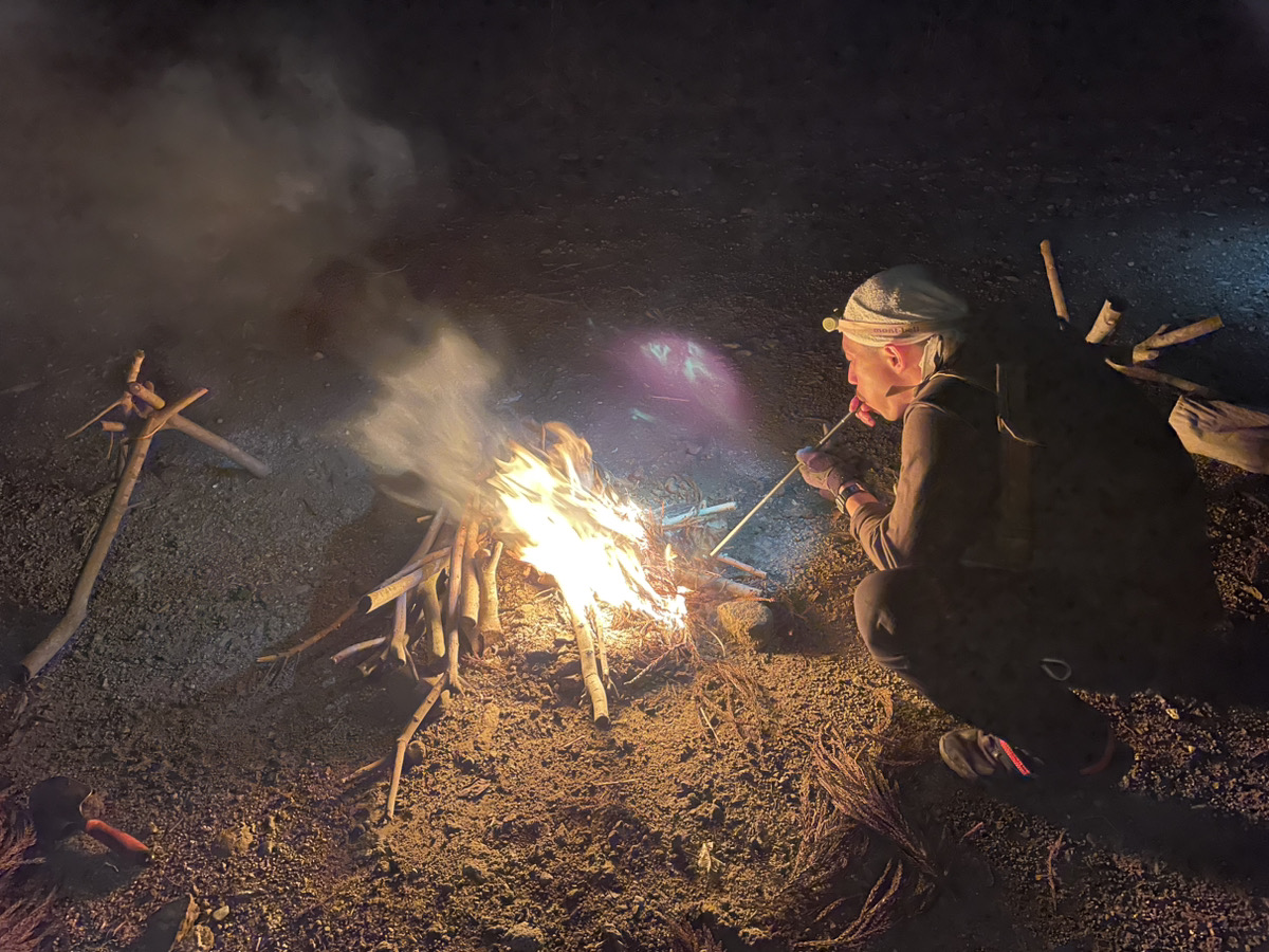 ジビエBBQでは、ワークショップの準備中にインストラクターが仕留めた穴熊を、焚き火で丸焼きにしてみましたよ♪