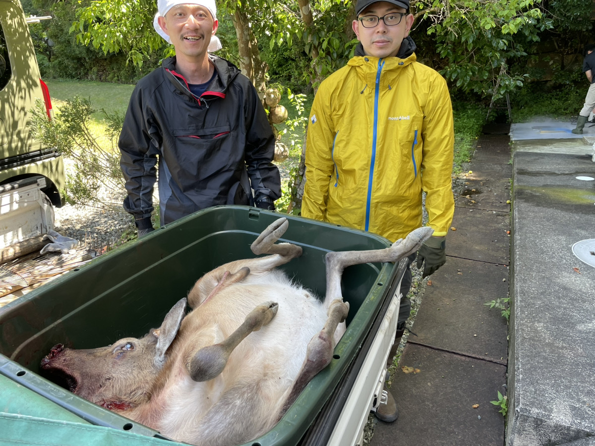 今回は、インストラクターの罠にかかっていた鹿1頭と、初日の午前中にワークショップとは関係なく1頭の鹿が手に入っており、2頭の鹿を解体することになりました