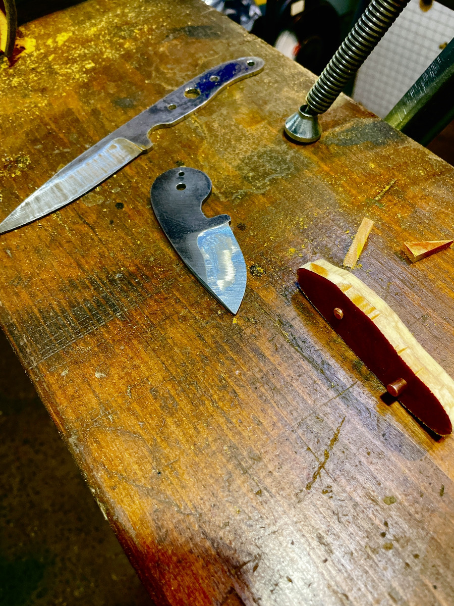 先日前半戦が終了したナイフメイキング ワークショップで作成中のナイフが焼入れから無事に戻ってきました♪