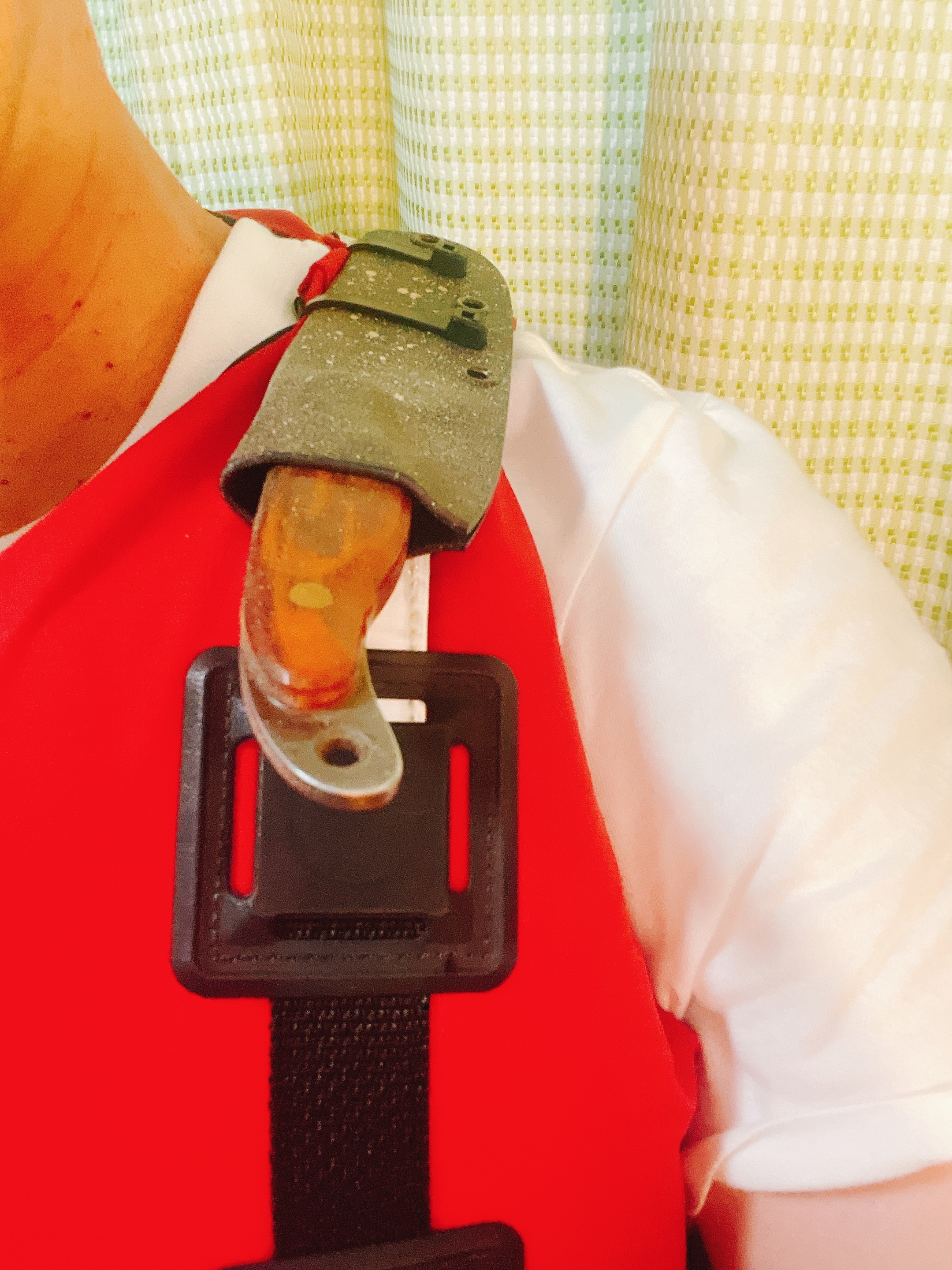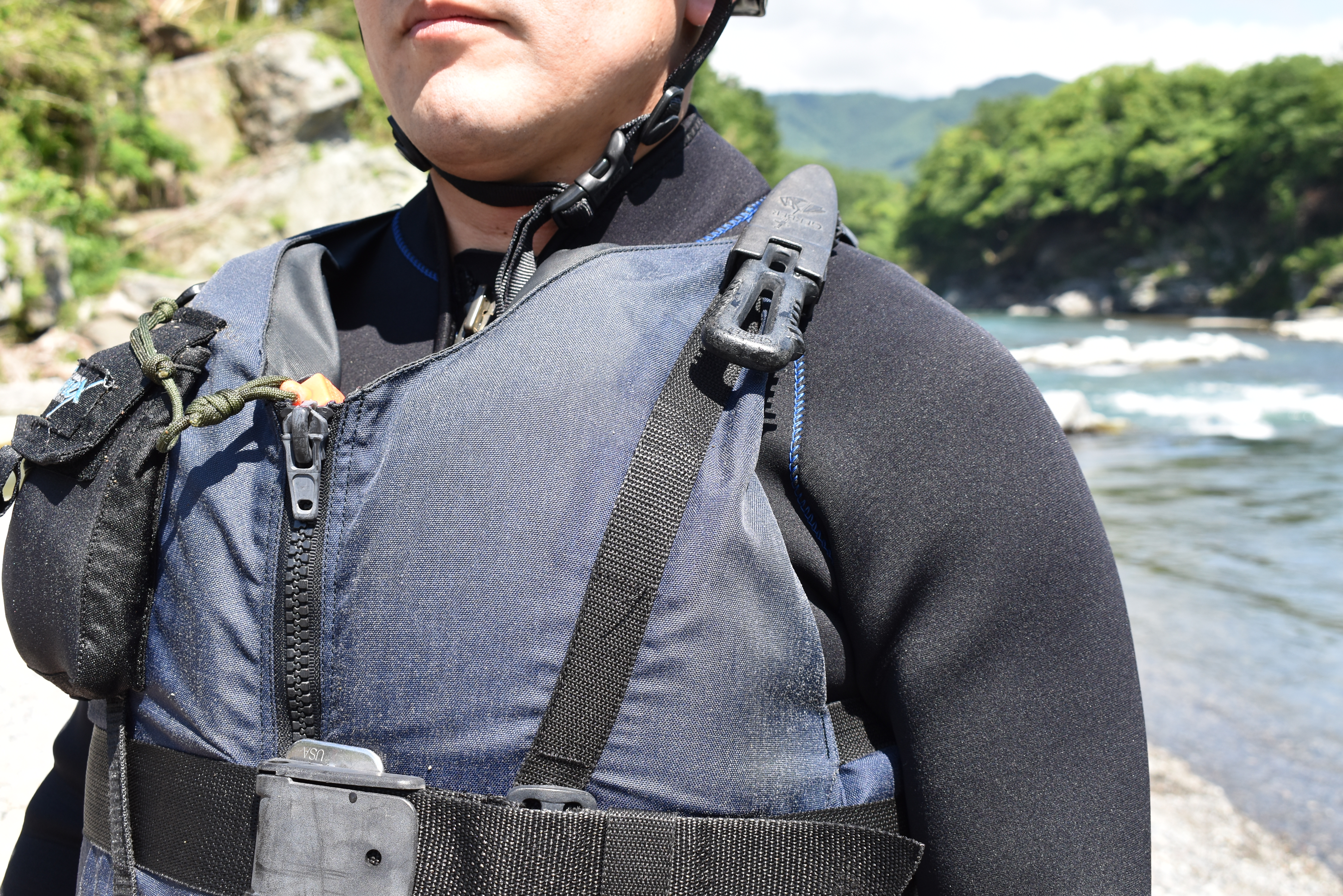 また濱田もそうですが、川流れワークショップの際にライフジャケットの肩口に自作ナイフを装着して川を下る方もいます。