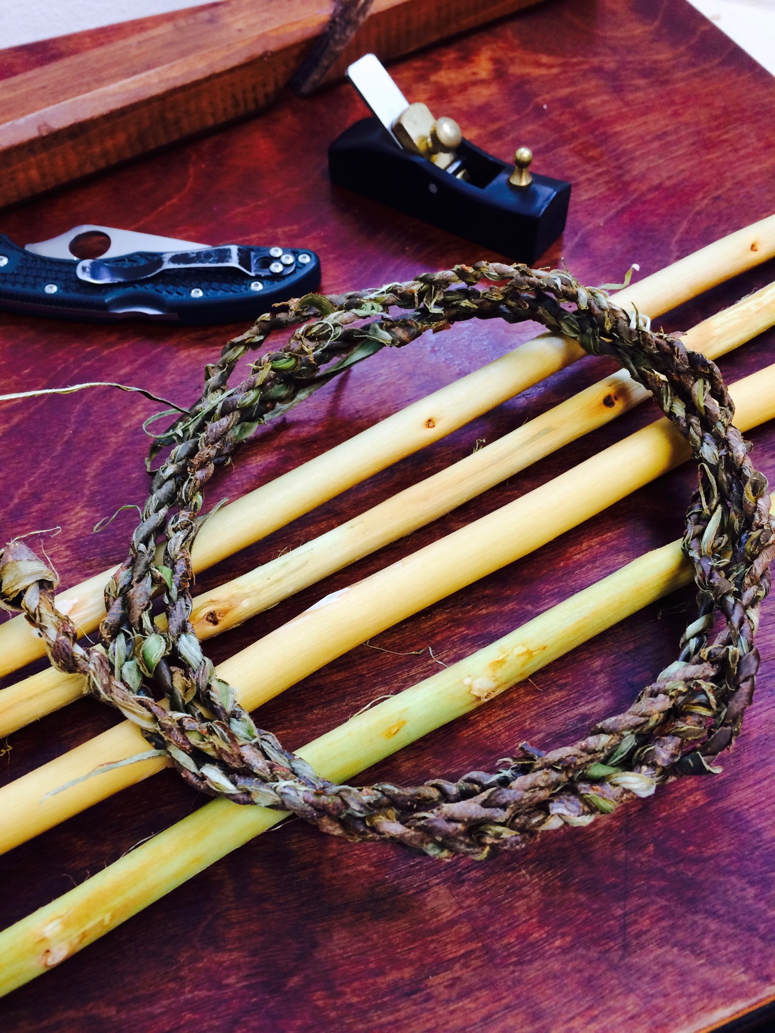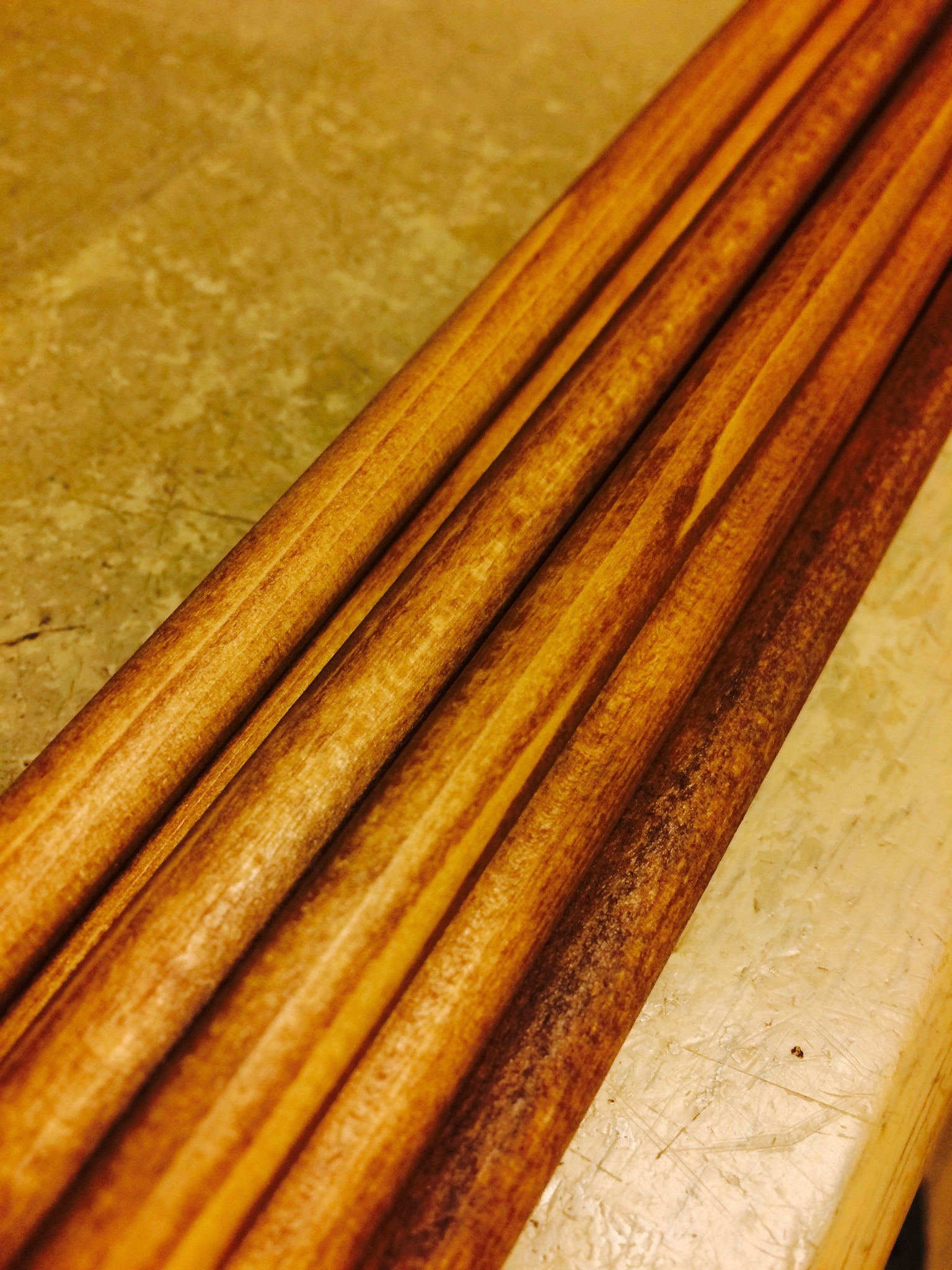 シャフトの素材としては木や竹(=笹)を使うことが多め。木も竹も実際に作ってみると、竹の方が作りやすく、完成品の性能も高いと感じます。もちろん、入手できる素材次第でその辺りは変わってくるでしょうが、自分で試した範囲ではそうでした。